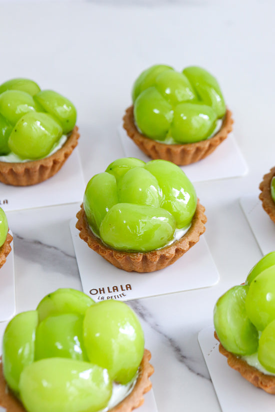 鋪滿清甜的青提子 ,內餡是是柚子啫喱和充滿空氣感的雲呢拿忌廉,底層是香脆曲奇脆撻