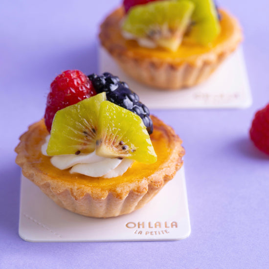 感源自法式經典吉士蛋撻Flan,用法國忌廉、牛奶與雲呢拿煮成柔滑濃郁的吉士,配鬆脆曲奇撻底,一口就能感受到滿滿香氣,面層再加上雲呢拿忌廉和時令水果,為濃厚的吉士添上一抹清新的味道。