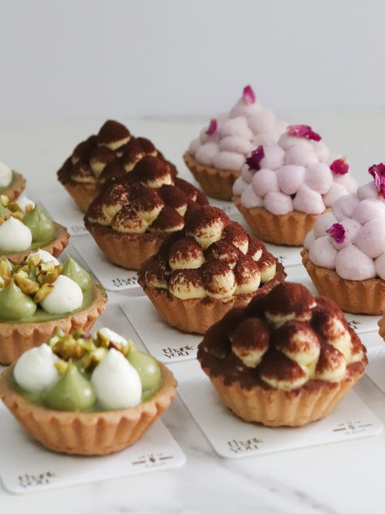 日本九鬼芝麻醬使用,加上口感煙靭的麻糬和宇治特尚焙茶粉,還有店主研製的黑白芝麻脆片,底層是香脆曲奇脆撻
